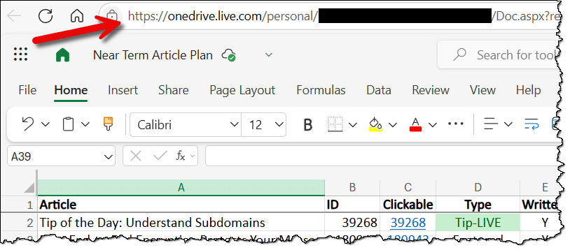 Rather than mess around3, I moved the spreadsheet back to OneDrive. However, rather than accessing the file on my PC, we access it online only, using the free online version of Excel.