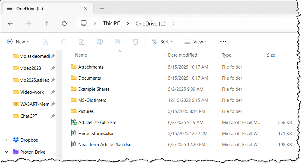 And, since I had my OneDrive online connection via rclone, if I ever felt the need to access the actual file, all I had to do was look at my virtual drive “L:”: