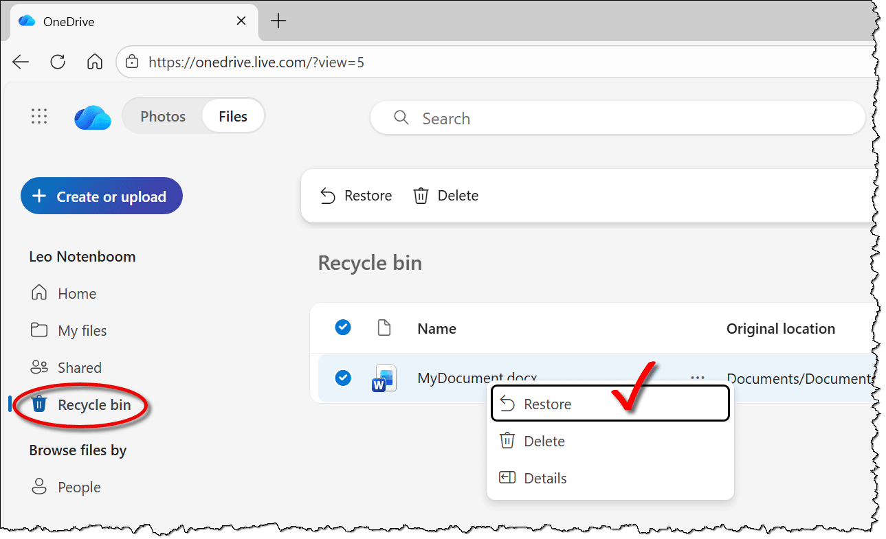 What most people don’t realize is that when OneDrive deletes a file online, it also moves the file to an online Recycle Bin.