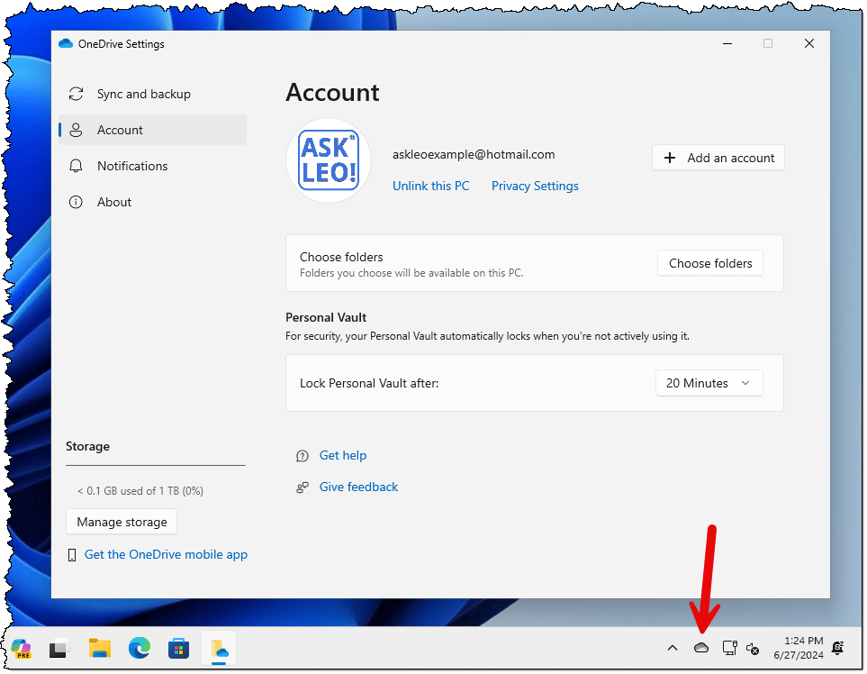In addition to its special folder, OneDrive includes an app that runs on your PC. By default, that app is signed into your Microsoft account.