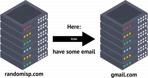 - Forwarding causes the other email account to push everything it gets by forwarding it — sending via email — to your central account.