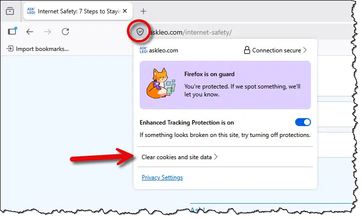 - Click on the website (askleo.com, in the example), and click the Remove button, and all cookies and site data will be removed. (This site doesn’t use any “site data”, which is another form of persistent storage a website can elect to use.)