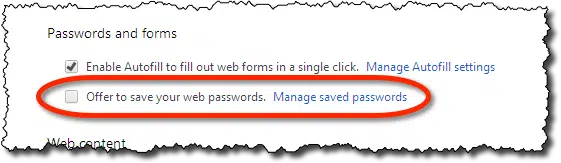 To clear any previously saved passwords click on the Managed saved passwords link.