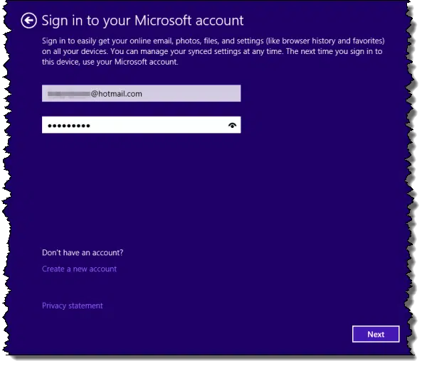 Then, you’ll be asked to provide a Microsoft account: