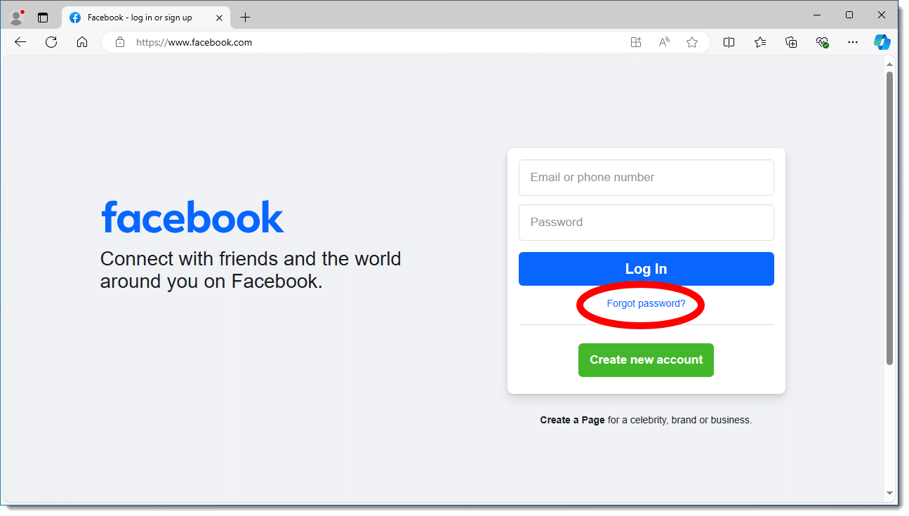 Underneath the password field of the Facebook login, there’s a “Forgot password?” link.