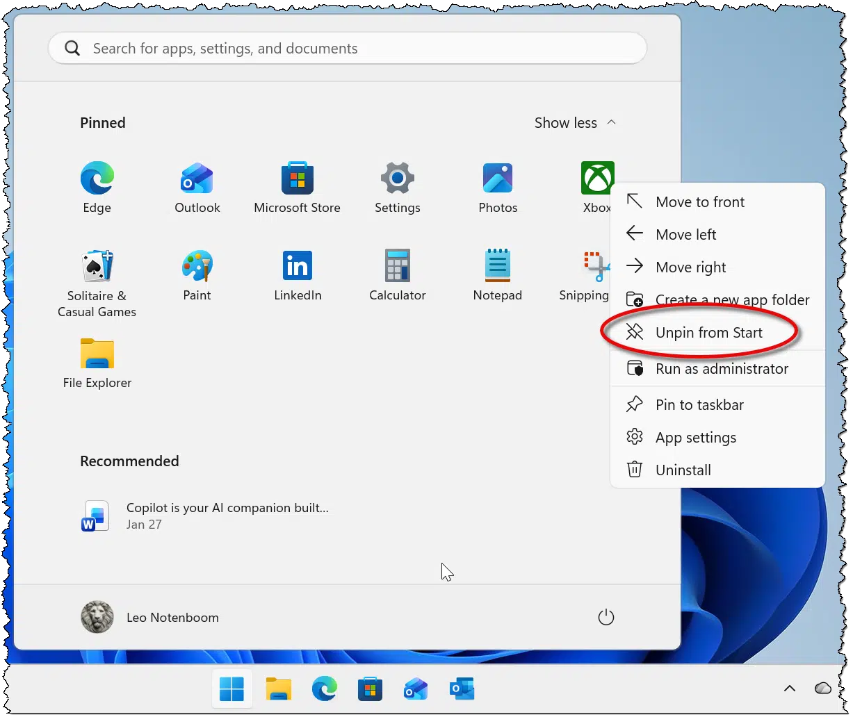 While not technically debloating, since we’re not uninstalling anything, I do take a few seconds to clean up the Start menu of icons I don’t need to see.