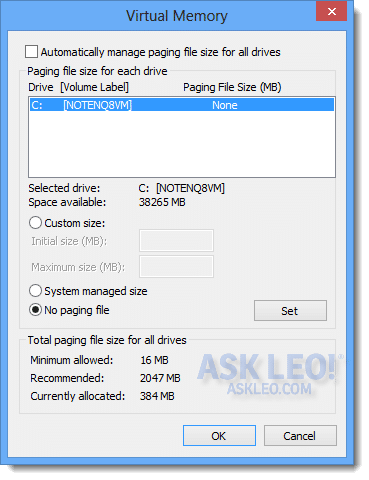 If that’s the case I actually recommend setting the swap file size to zero. There’s nothing that says you must have a swap file. It’s only a technique that’s used in case you don’t have enough RAM to run all of the software you’re trying to run on your machine.