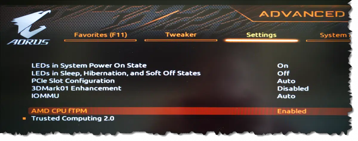 Pictured above is a setting to turn TPM support on or off in the UEFI (formerly known as BIOS) settings for my current desktop machine.