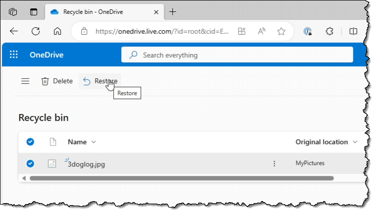 I rarely use the SHIFT+Delete method, but one time I accidentally SHIFT+Deleted a file I wished I hadn’t. I went to the Recycle Bin on the OneDrive website and it was at the top of the list. The files are displayed in descending date order so it’s easy to find the recent deletions.