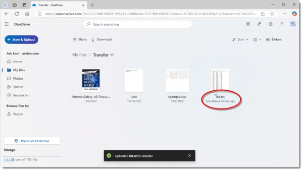 In the example above, I’ve uploaded a single file, “list.txt”.