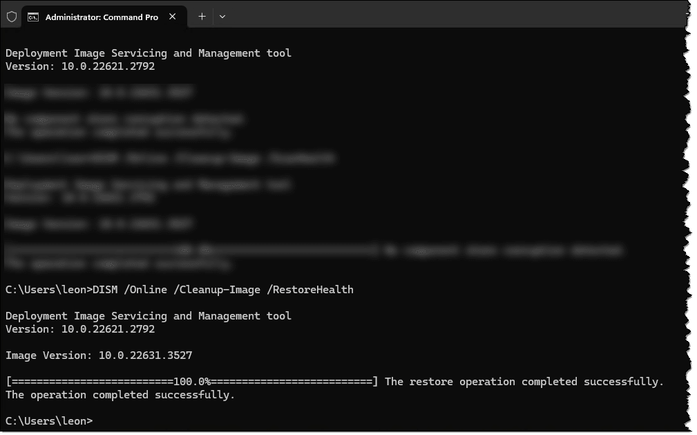 When I opened the Terminal (ADMIN) to run the three DSIM commands I received the following message “Install the latest PowerShell for new features and improvements! https://aka.ms/PSWindows“. Shouldn’t Windows update have kept my pre-installed Windows 11 PS up to date? I don’t know what version of PS I have and don’t know which version I should download and install because this article doesn’t mention this message.