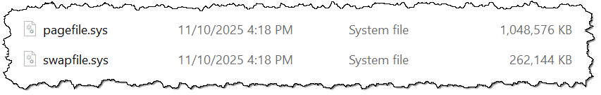 You may notice pagefile.sys is roughly the same size as your virtual memory settings. That’s a clue.