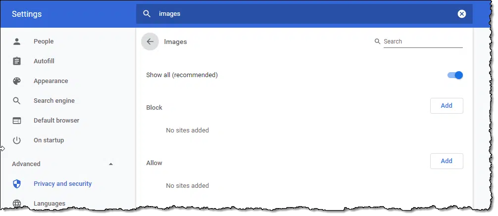 The first step is to check to make sure that’s configured properly. In Google Chrome, for example, there’s a setting specifically for controlling image display.